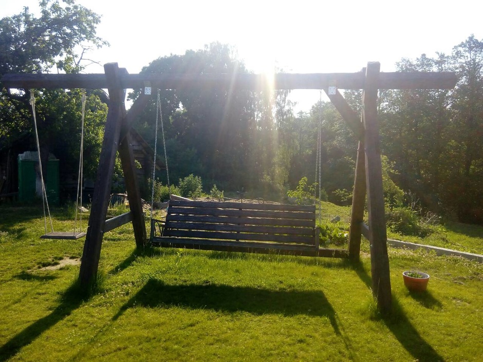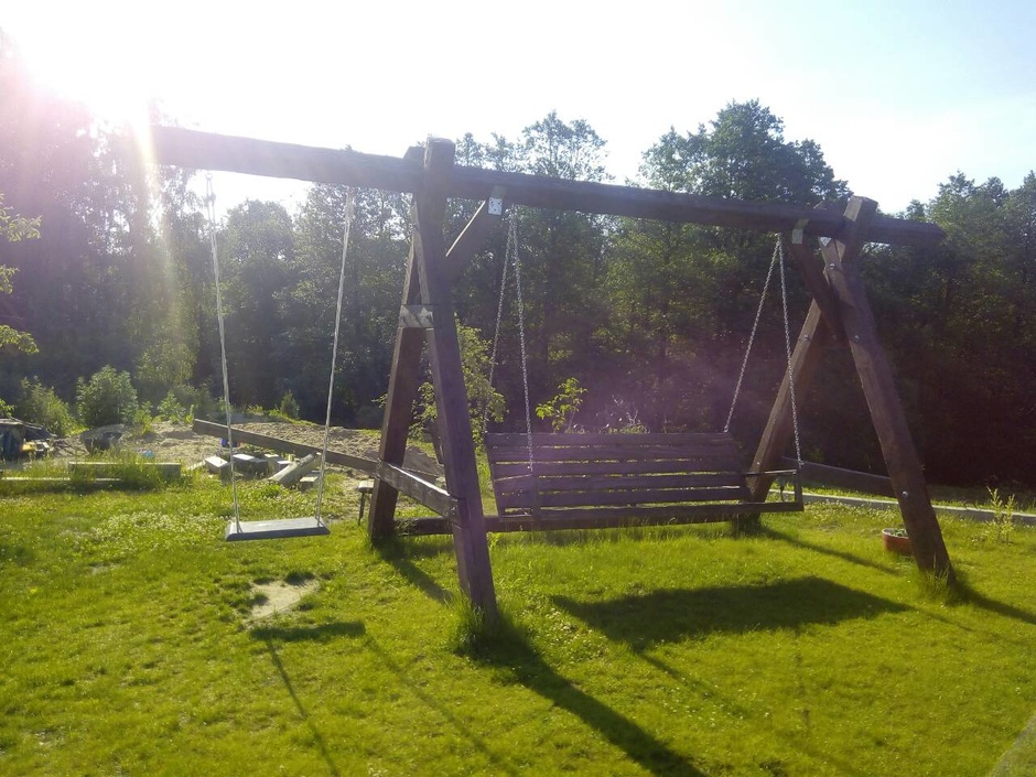 Большие и маленькие качели на которых могут кататься как взролслые так и дети.